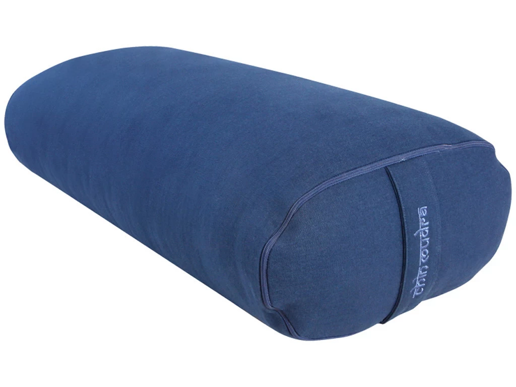 Le bolster de yoga ovale, utilisé par les écoles Iyengar, offre un espace plus large d’appui et une hauteur plus basse qu’un bolster de yoga cylindrique. Sa forme plate facilite le rangement.