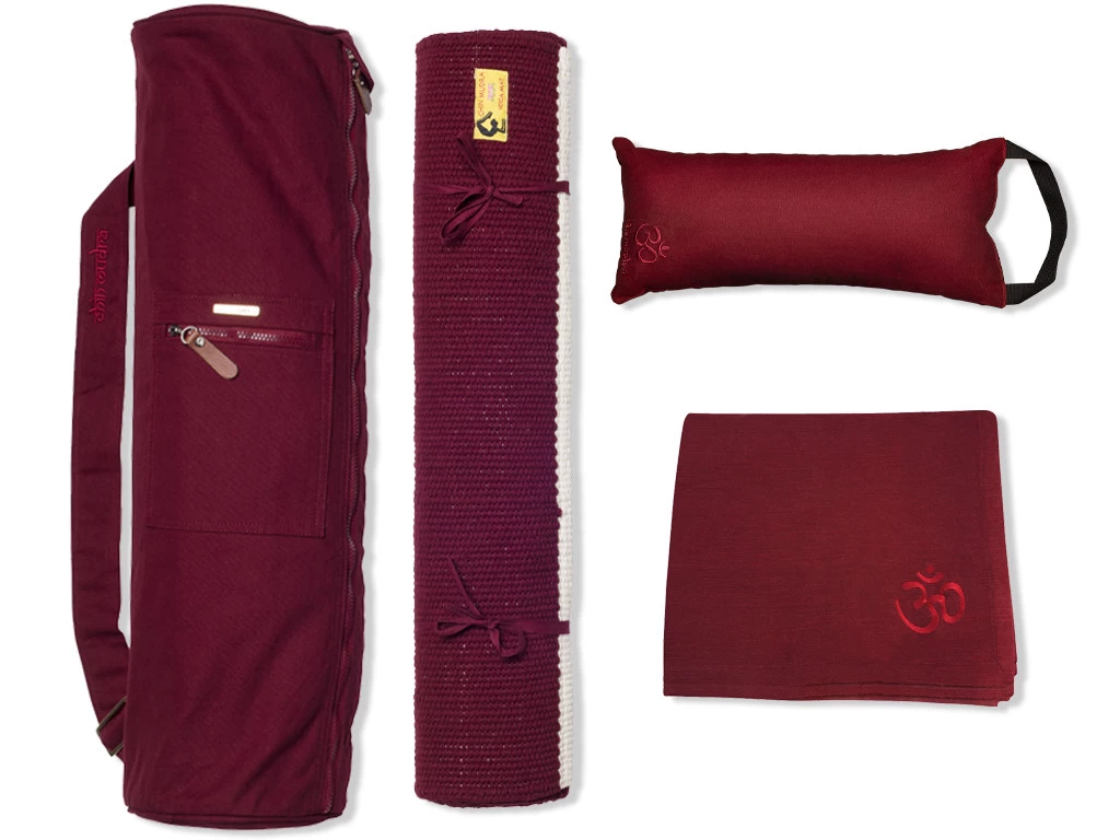 1 Couverture de yoga 100% coton bio 150cm X 200cm Bordeaux