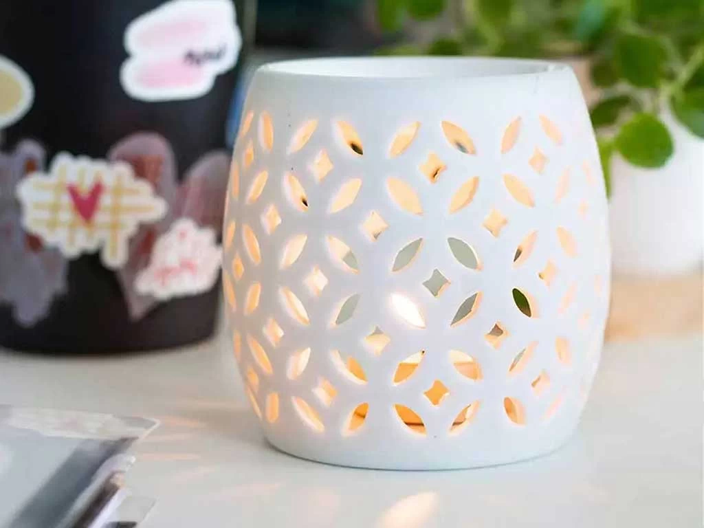 Ce joli diffuseur en porcelaine à bougie chauffe-plat sera parfait pour vos résines, huiles essentielles, plantes à brûler ou encore palets fondants parfumés. Son pourtour ajouré crée une ambiance relaxante à la lumière de la bougie. Pour un moment de féérie très relaxant !