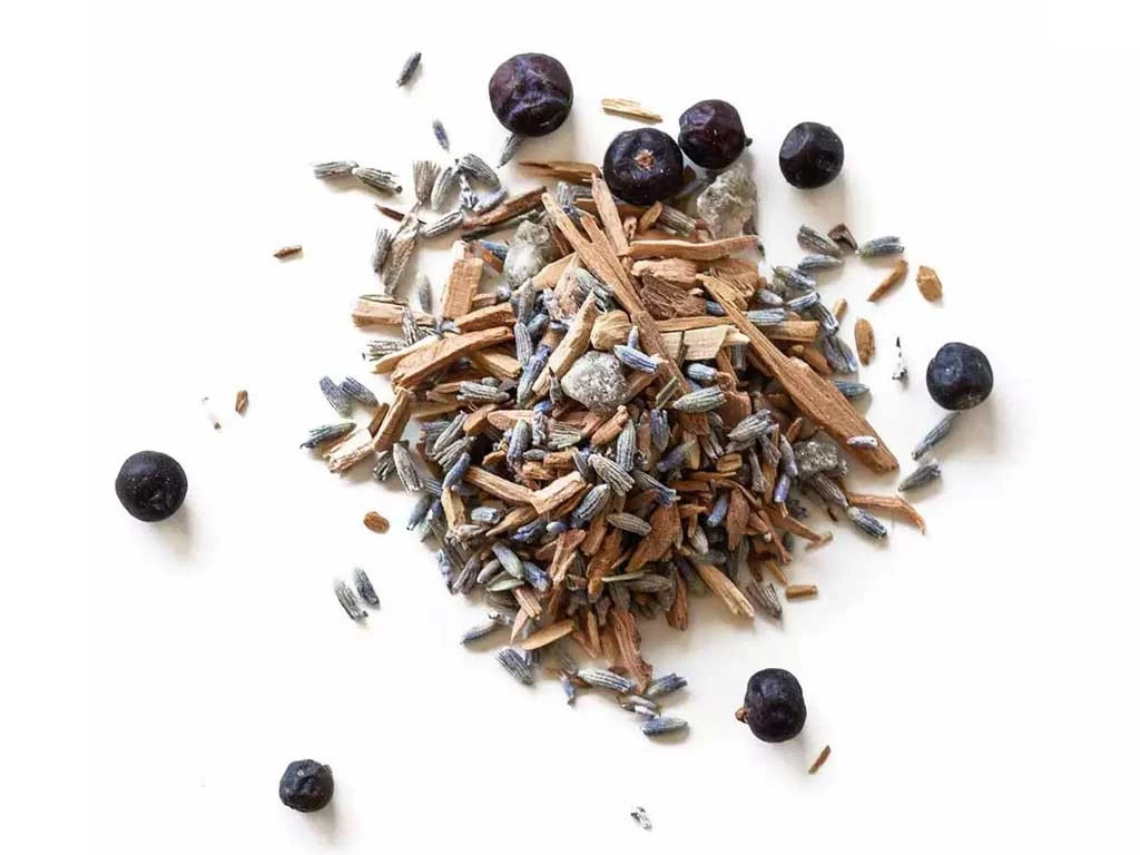 Des plantes à brûler constituées d’un mélange enchanteur de bois de santal blanc, bois de cade, résine de benjoin, lavandin et baies de genièvre pour stimuler la créativité, libérer l’imagination et éveiller l’intuition.