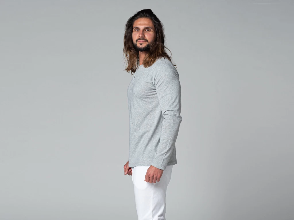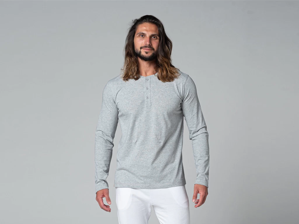 T-shirt col 3 boutons, 100 % coton certifié biologique par OCS 100 (Organic Content Standard)