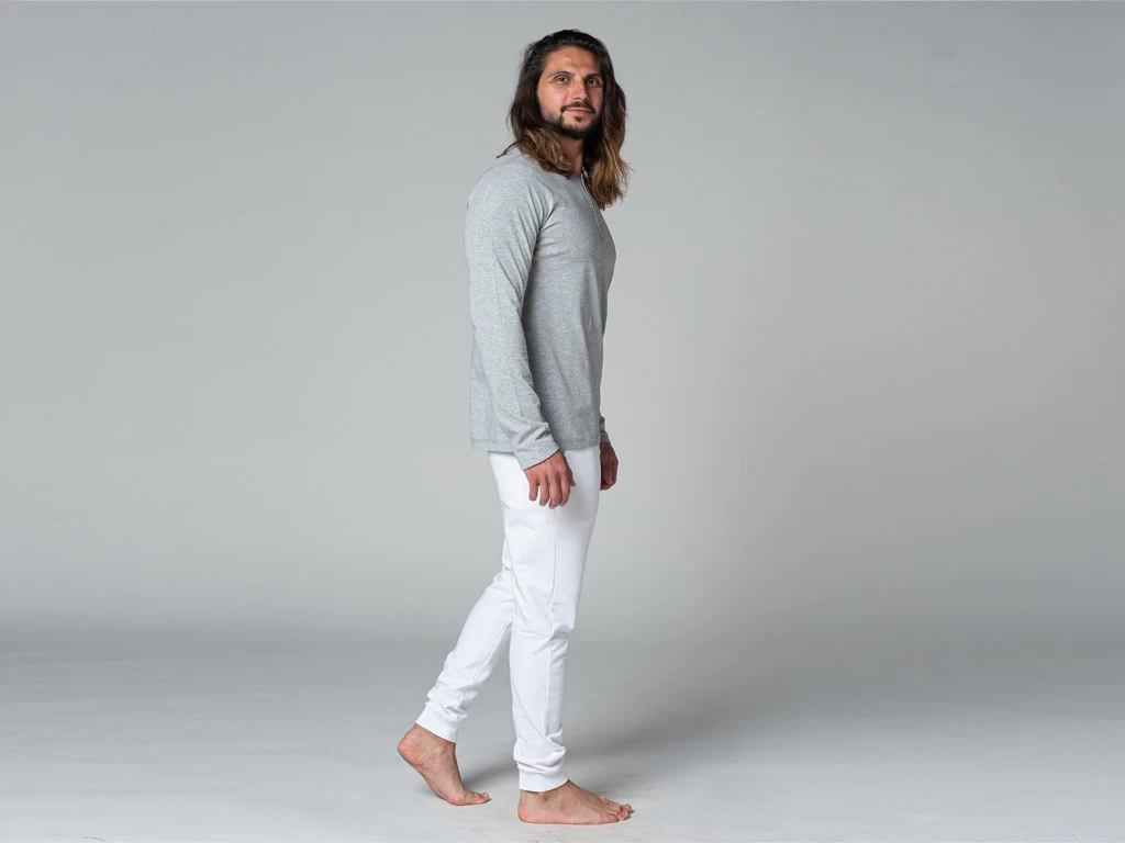 Chin Mudra, fidĂšle Ă sa rĂ©putation a fabriquĂ© ces t-shirts Ă partir dâun coton Jersey peignĂ© de haute qualitĂ©. En traitant le coton de cette maniĂšre, les fibres sont nettoyĂ©es et on obtient les fibres les plus longues et les plus rĂ©sistantes, ce qui donne un fil de meilleure qualitĂ©.