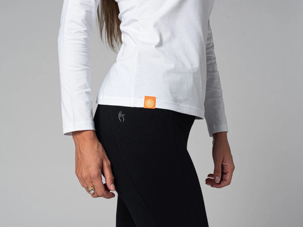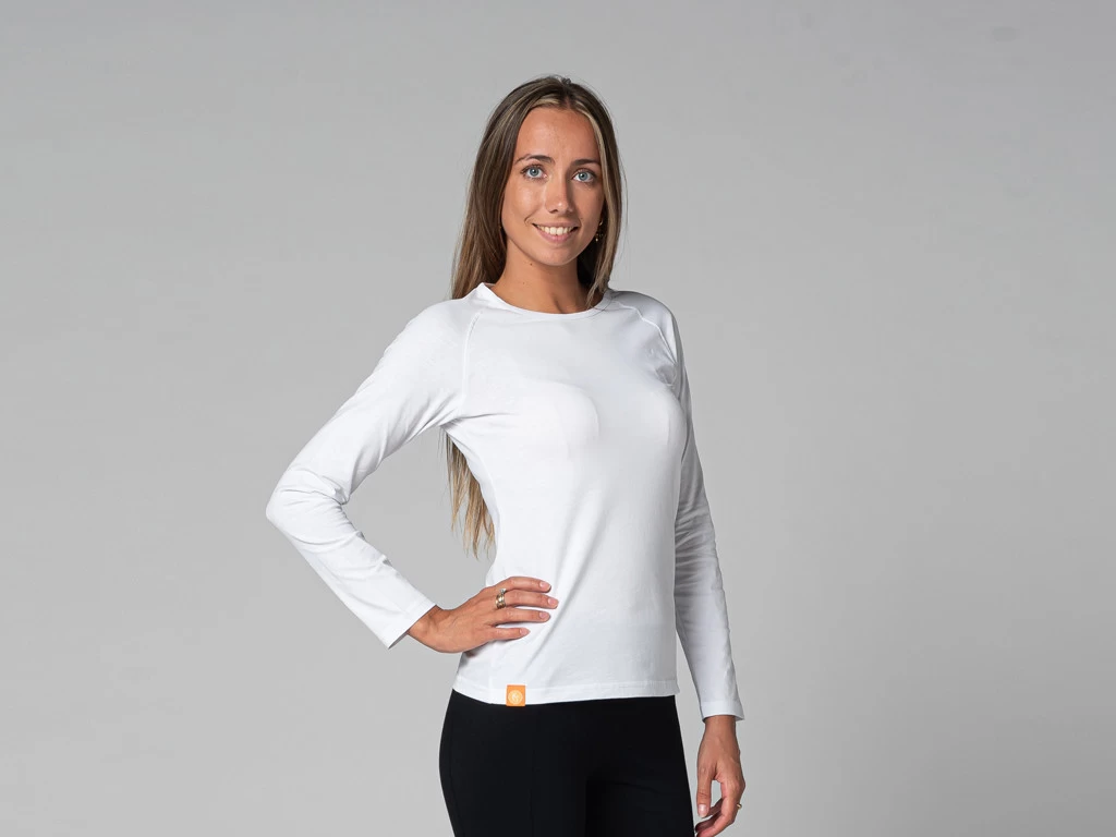 T-Shirt Tara, manches longues, Col ras du cou, 95 % coton certifié biologique par OCS 100 (Organic Content Standard) et 5% Élasthanne.